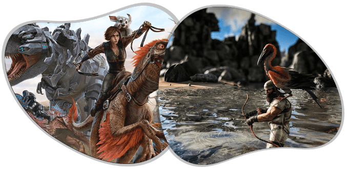 Ark: Survival Evolved is a 2017 action-adventure survival video game developed by Studio Wildcard. In the game, players must survive being stranded on one of several maps filled with roaming dinosaurs, fictional fantasy monsters and other prehistoric animals, natural hazards, and potentially hostile human players.